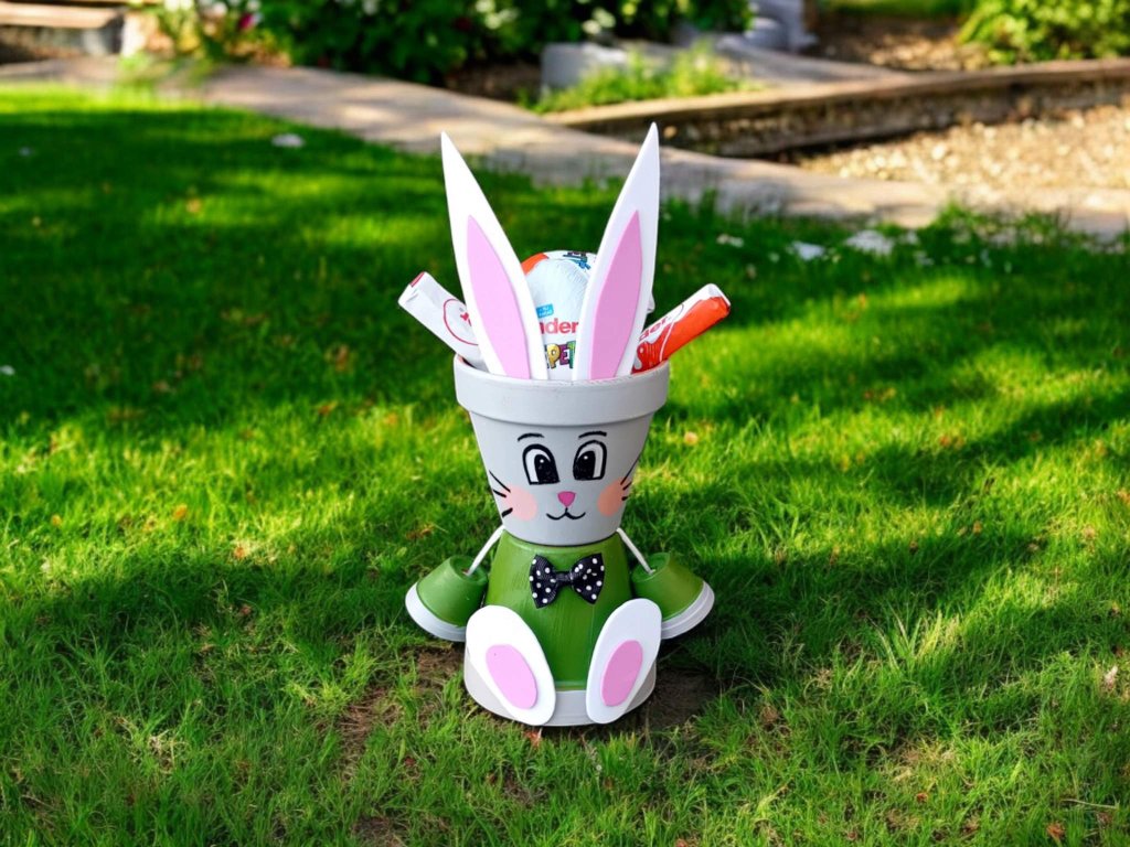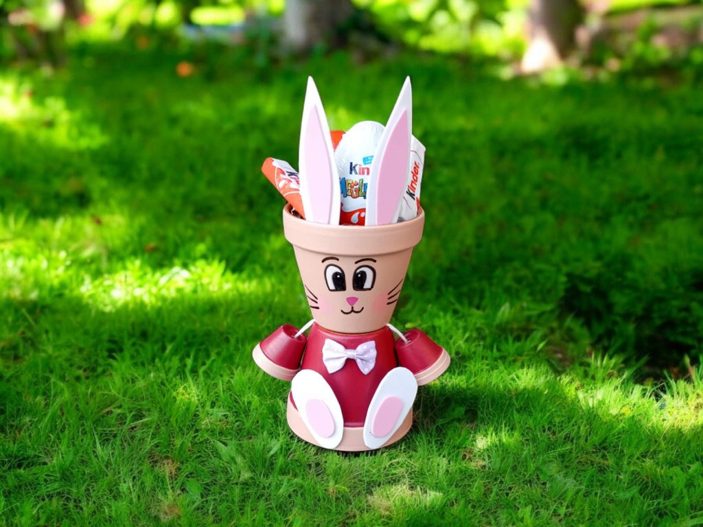 Dekoráld otthonod a Húsvét közeledtével egyedi nyuszi figurával. A fejében elhelyezhető csokoládé, tojás, szalvéta, illetve egyéb dekorációs eszköz is. Feldobhatjuk vele otthonunkat, az asztalon vagy polcra helyezve vidám hangulatot teremt. Szeretteinknek vagy barátainknak is emlékezetes ajándék lehet.
